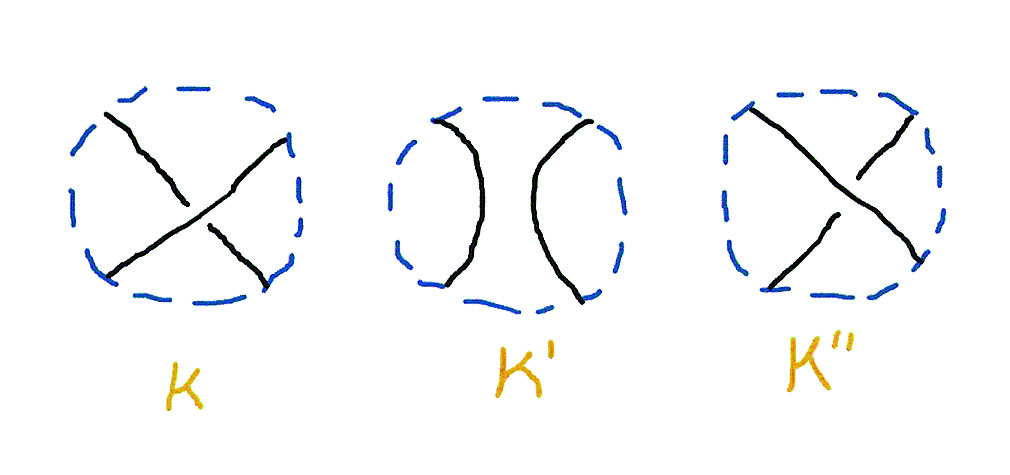 How should K, K', and K" be related in order to participate in such an identity? In Figure 3, I have drawn a partial knot. It is only a partial knot because there is a missing piece, indicated by the question mark.