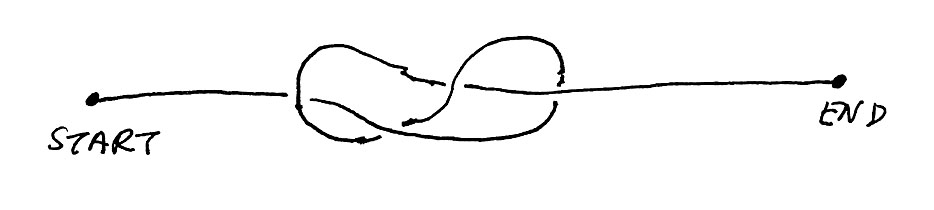 In a world of three spacetime dimensions, the particle path might be knotted. For an example of a knotted path, see Figure 6.