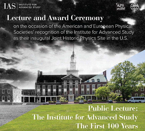 The Institute for Advanced Study, one of the world’s foremost centers for curiosity-driven basic research, will be recognized by the American Physical Society (APS) and the European Physical Society (EPS) as their first Joint Historic Physics Site in the United States. The award ceremony will immediately follow The Institute for Advanced Study: The First 100 Years, [a video of the talk is available here] a public lecture that author and historian George Dyson will give at 5:30 p.m. on Wednesday, November 9. Both will take place in Wolfensohn Hall, on the Institute campus.