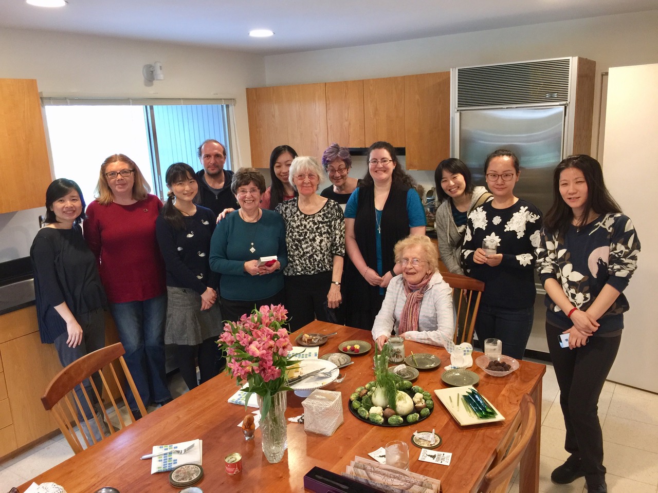 Beginning January 13: In its 17th year, English Conversation (EC), hosted by Helen Goddard, is for anyone at IAS whether a beginner English speaker or a native or fluent speaker. You may come every time, or drop in and out. There are usually between 8 and 13 people and the group often chat in pairs to make sure that everyone gets to talk. Helen prepares anything from puzzles, to reading short pieces, to poems with fun vocabulary. The group also talks about things to do in Princeton, where to go and how things work. Elevenses takes place close to 11 am in Helen's kitchen where she has tea or coffee and something to nibble. Nibbles range from a simple biscuit (= cookie) to fruit, to a special treat made by anyone in the group. A relaxed and friendly group, EC meets at 43 Maxwell Lane, a 5 to 6 minute walk from Fuld Hall. Standing with your back to Fuld Hall, you walk to your left, curving round the meadow. Maxwell Lane is on your left and Helen's house is the second one on the left.