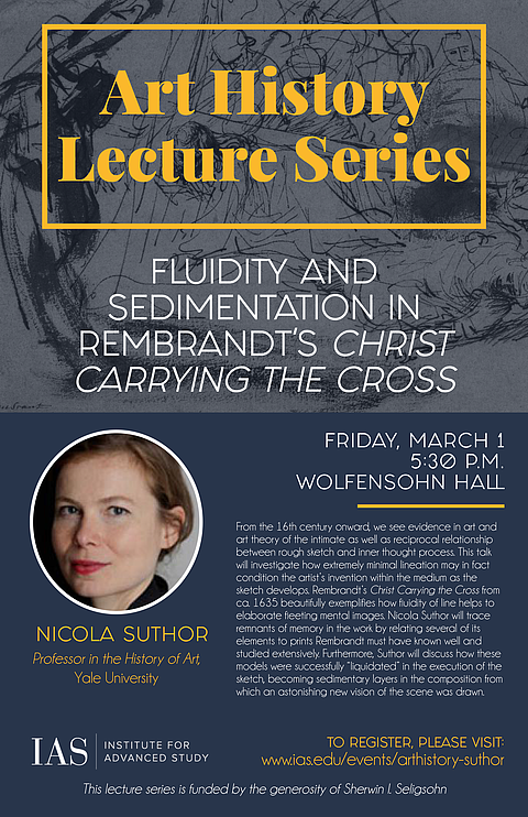 From the 16th century onward, we see evidence in art and art theory of the intimate as well as reciprocal relationship between rough sketch and inner thought process. This talk by Nicola Suthor of Yale University will investigate how extremely minimal lineation may in fact condition the artist’s invention within the medium as the sketch develops. Rembrandt’s Christ Carrying the Cross from ca. 1635 beautifully exemplifies how fluidity of line helps to elaborate fleeting mental images. The talk will trace remnants of memory in the work by relating elements to prints Rembrandt must have known well and studied extensively. Furthermore, Suthor will discuss how these models were successfully “liquidated” in the execution of the sketch, becoming sedimentary layers in the composition from which an astonishing new vision of the scene was drawn.