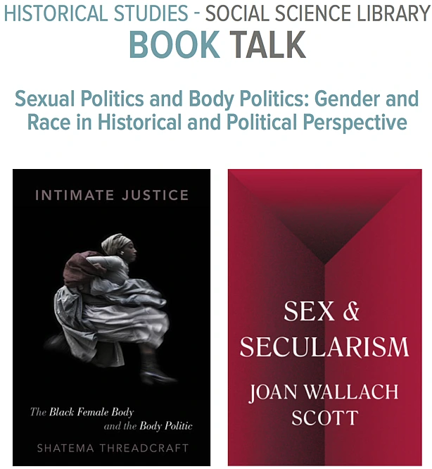 Joan Wallach Scott, Professor Emerita in the School of Social Science, and Shatema Threadcraft, Member in the School and Associate Professor of Government at Dartmouth College, will discuss "Sexual Politics and Body Politics: Gender and Race in Historical and Political Perspective." Scott recently authored the book Sex and Secularism, published by Princeton University Press. Threadcraft recently authored the book Intimate Justice: the Black Female Body and the Body Politic, published by Oxford University Press.