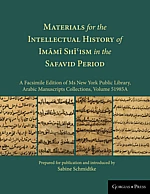Materials for the Intellectual History of Imāmī Shīʿism in the Safavid Period. A Facsimile Edition of Ms New York Public Library, Arabic Manuscripts Collections, Volume 51985A. Prepared for publication and introduced by Sabine Schmidtke, Institute for Advanced Study, Princeton (Piscataway, NJ: Gorgias Press, 2018). Additional information.