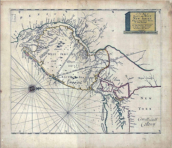 In 1675, Lord Berkeley sold his interest in West New Jersey for £1,000 to John Fenwick and Edward Byllynge, two Quakers whose subsequent dispute over the property was referred for arbitration to William Penn. Fenwick sailed for America, while Byllynge fell into debt and eventually transferred his interest to a group of creditors including Penn, who also purchased an interest in East New Jersey (including much of what would become Princeton) at auction in 1682 for £3,400 from Carteret’s estate.