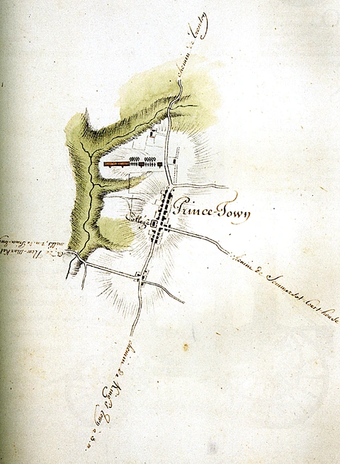In 1683, a settler named Henry Greenland opened a tavern near the midpoint of the wagon road, and around this nucleus the village of Prince-Town began to form. The proprietors of East and West New Jersey met at Greenland’s Tavern in 1683 to decide their common boundary (marked by the present-day Province Line Road) and thus put Princeton on the map. The Nassau Tavern (and Nassau Inn), successor to Greenland’s Tavern, is still where coaches drop off travelers and Princeton University houses its guests.