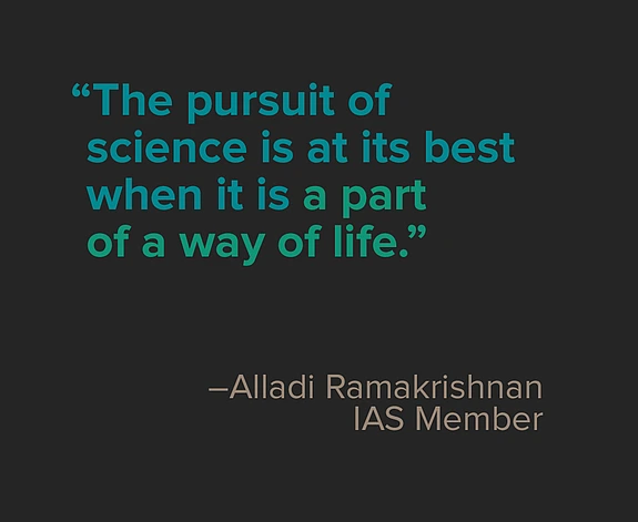 My father Alladi Ramakrishnan (1923–2008), who made significant contributions to stochastic processes, elementary particle physics, matrix algebra, and the special theory of relativity, passed away at my home in Gainesville, Florida, last June, at the age of eighty-four. Inspired by his visit to the Institute for Advanced Study, where he was a Member in 1957–58, he later founded and directed the Institute of Mathematical Sciences (MATSCIENCE), in Madras, India.