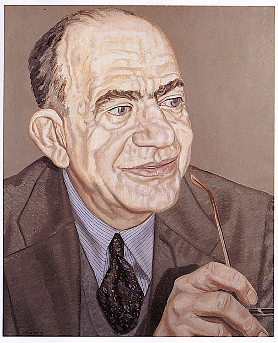 The choice of that artist, Philip Pearlstein, was also inevitable and providential. Pearlstein had already done a double portrait of two leading American art historians, Linda Nochlin and Richard Pommer, and a portrait of Panofsky by him would stand in the noble tradition of Max Liebermann’s portrayal of Wilhelm von Bode, and Oskar Kokoschka’s painting of Hans and Erika Tietze. A fourth coincidence was that Philip and I had known each other for more than forty years, ever since we were graduate students together at the Institute of Fine Arts in New York, where in spring of 1950 we listened, in adjoining seats—and this is the fifth coincidence—to the lectures of none other than Erwin Panofsky, who taught there regularly. I telephoned Philip and made him an offer that, under those circumstances, he could hardly refuse. What came as an astonishing surprise, however, was that instead of producing a modest little sketch or drawing, which is all I expected at the agreed price, Pearlstein made a monumental, over lifesize and laborintensive painting.