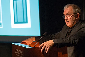 The splendid portrait of Erwin Panofsky, late Professor in the School of Historical Studies, installed in the Institute’s Historical Studies–Social Science Library, was commissioned from Philip Pearlstein in 1993. The portrait was the result of a series of coincidences that Panofsky liked to call “accidents on the highways of tradition,” this time involving a collision of at least a half dozen vehicles of history.
