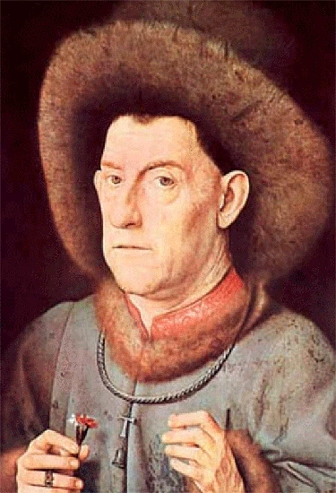The next-to-last coincidence is that the lectures we heard in New York were none other than the manuscript of what soon became one of Panofsky’s most important books, Early Netherlandish Painting, Its Origins and Character (Harvard University Press, 1953), and the Man with a Pink was one of the well-known works he discussed.