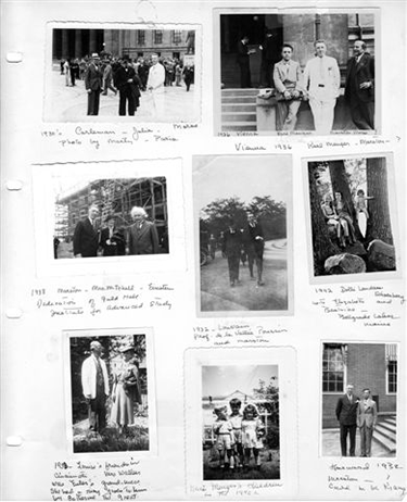 The above photograph (ca. 1958) of Marston Morse (1892–1977), Professor in the School of Mathematics, and his wife Louise is a rare image from one of two albums compiled by Louise Morse over seven decades. It is unusual in that it includes Louise herself. Louise was often the one behind rather than in front of the camera. Her two packed volumes reveal the Institute’s mathematical community at leisure. Enhanced with newspaper clippings and carefully annotated with names and dates, the albums, which have been promised to the Shelby White and Leon Levy Archives Center, are a treasure trove of snapshots taken at the annual gatherings of Institute Faculty, Members, Visitors, and their families held by Marston and Louise in their home.
