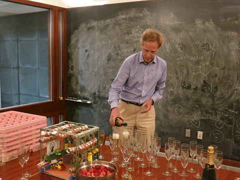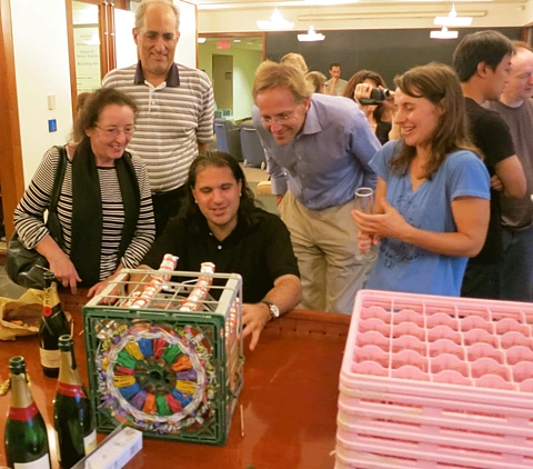 The new particle shows several signs that it is the Higgs boson, the only missing piece of the Standard Model, which gives an excellent account of nature’s electromagnetic, weak, and strong interactions. Although some physicists had come to doubt whether the boson existed, Nima Arkani-Hamed, Professor in the Institute’s School of Natural Sciences, was so confident that in 2007 he bet a year’s salary that it would be detected at the Large Hadron Collider. In the week before the CERN presentation, Arkani-Hamed invited colleagues to the party and organized the catering. Convinced that he had won his bet, he bought three bottles of champagne, including two of Special Cuvée Bollinger.