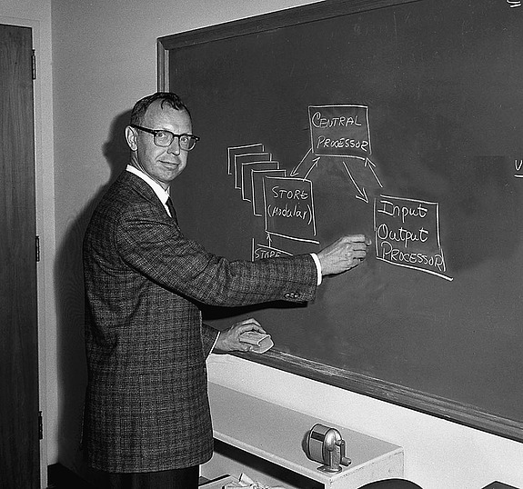 Willis Ware accepted a position with the Institute for Advanced Study’s Electronic Computer Project (ECP) on May 13, 1946, and began work on June 1. He was the fourth engineer hired to work on the project—and, at his death on November 22, 2013, was the last survivor of the original engineering team. The working architecture of the modern digital computer—gates, timers, shift registers, all the elements we take entirely for granted including how to implement an adder, not to mention random-access memory and the registers that keep track of it—has Willis Ware’s fingerprints all over it.