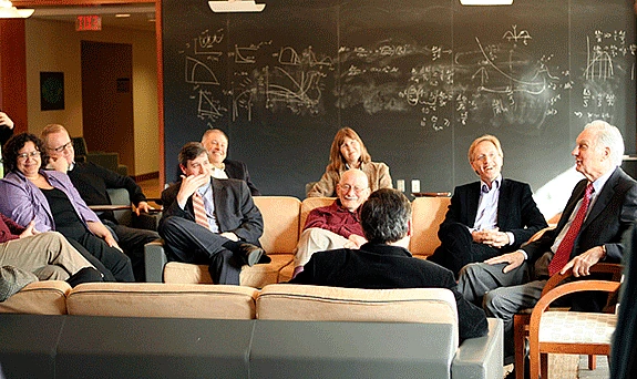 Nor were my stimuli limited to my most closely allied fields in history and anthropology. A recent innovation here at IAS is “After Hours Conversations.” The format is fixed: ten minutes of talk (no notes, no slides), followed by twenty minutes of open discussion. (Oh, and drinks. The sessions are held at Harry’s Bar.) Talks ranged from “Origins of Life” (Piet Hut) and “Terrorism and the World-Wide Web of Interdiction” (Kim Scheppele) to “Why Petroleum Did Not Save the Whales” (Richard York) and “Category Theory” (David Spivak). I even gave my own talk, “Scales of Time and Space in Global Health: Getting Historians and Geneticists on the Same Page,” which was a welcome opportunity for me to riff on why the notions of “working at scale” that have been pioneered by global historians can be so fruitful in finding common ground between different disciplines.