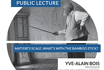 In this public lecture, held at the Institute on May 5, 2017, Yve-Alain Bois, Professor in the School of Historical Studies, focuses on Matisse's use of the bamboo stick in large-scale works and the bodily conception of scale it entails. In a photograph dating from 1931, Matisse is shown sketching The Dance—a gigantic mural commissioned by Albert Barnes for his foundation—with his charcoal at the end of a six-foot bamboo stick. This unusual practice stems from the artist’s discovery that squaring up a small sketch, as has been the standard procedure for large paintings and murals, was incompatible with his aesthetic.