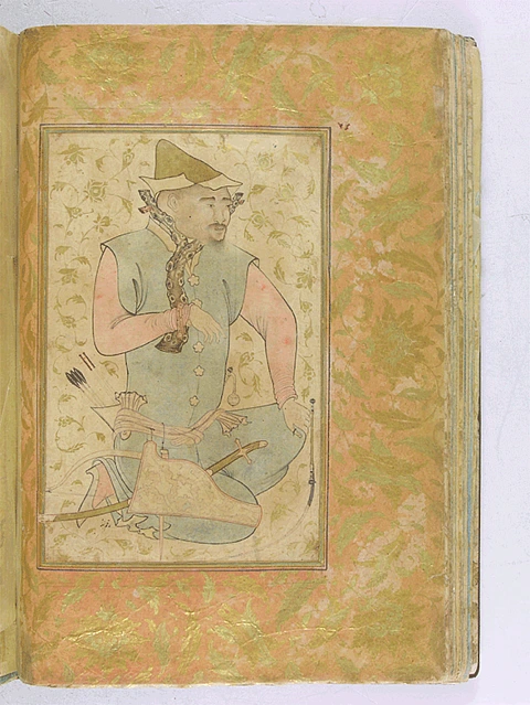 Let me first try to explain the difference between albums and illustrated manuscripts. In his seminal work on Persian albums, David J. Roxburgh defines albums as “bound collections of calligraphy, painting and drawing” that can be conceptualized in widely different ways, but that share an intention to preserve and display.5 The term used for albums in the Perso-Islamic world is muraqqaʿ, meaning patched, such as a patched garment, and is used for albums to evoke their patchwork or collage-like character. The earliest extant albums date to the Timurid courts of the early fifteenth century, and their popularity as an art form increased in the second half of the sixteenth century.