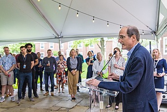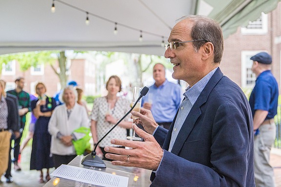 On May 20, 2022, IAS celebrated Founders Day in recognition of Louis Bamberger and Caroline Bamberger Fuld, the brother and sister who founded and endowed IAS on May 20, 1930, providing for its lasting and essential independence. The event, held on campus, began with a toast from Director and Leon Levy Professor David Nirenberg, after which the Friends held their Annual Meeting, and Staff, Members, Faculty, the Director, and a Trustee played in the third annual flag football game. Hardly deterred by a brief thunderstorm and downpour, the event continued with food trucks, a community dinner, and an evening of dancing in Simons Hall. Before joining the flag football game, Nirenberg opened the Friends Annual Meeting, sharing some thoughts about the value of the Institute and the Friends’ support of its work.