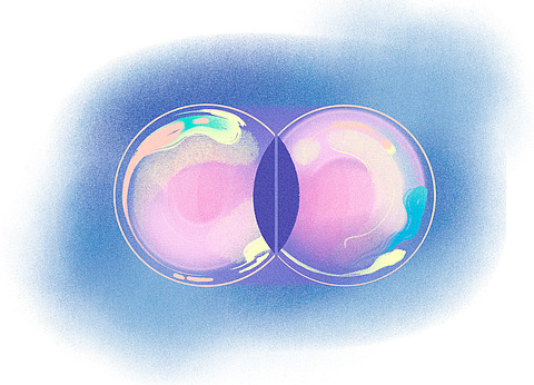 De Lellis and Skorobogatova were investigating what one can say about the geometric structure of more general objects that are governed by minimization principles. To demonstrate the difficulty inherent in providing an answer, imagine that, having admired your first bubble with its minimized surface area, you decide to blow a second. Your two bubbles join in midair, and you notice that they connect in a very specific configuration: the double bubble. This is the shape that minimizes the surface area of the two bubbles combined. But something fundamental has changed about them.
