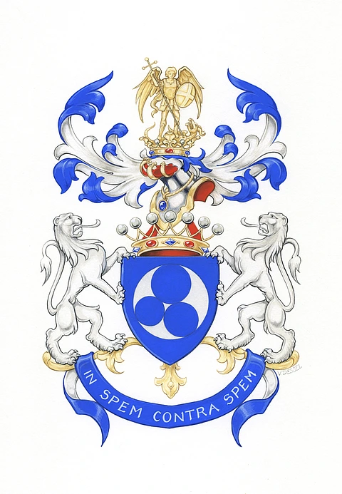 A coat of arms designed by Jean Bourgain, IBM von Neumann Professor in the School of Mathematics, who was bestowed the title of Baron by the Belgian government in July 2015.