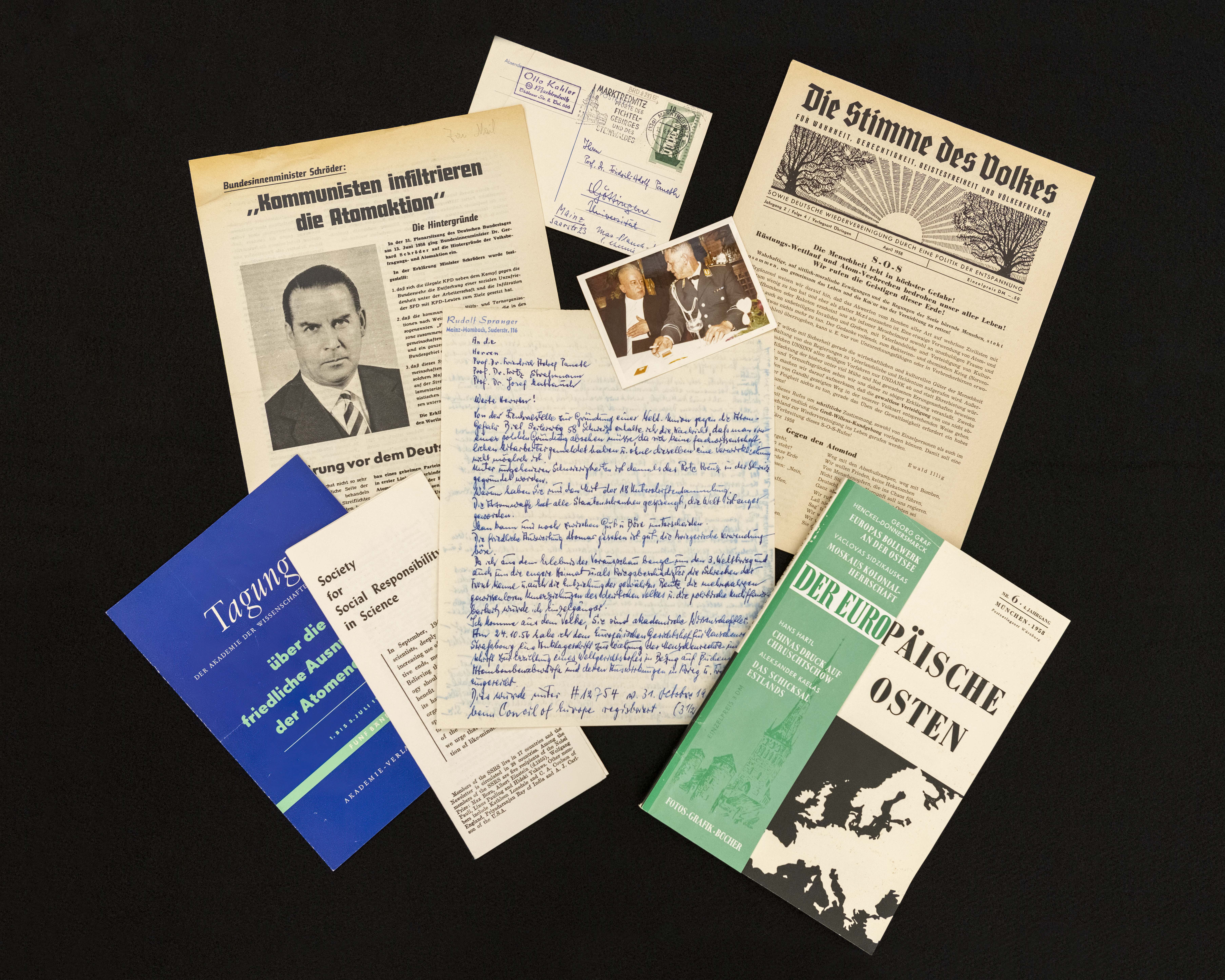 The Paneth collection documents the exchanges between scholars that took place in the wake of his involvement in the manifesto. It comprises 82 folders of original documents, correspondence, offprints, and printed ephemera, as well as appeals and newsletters from the Japan Council Against A & H-Bombs, including a two-page speech by Yukawa entitled “Nuclear Testing is Everybody’s Business.”