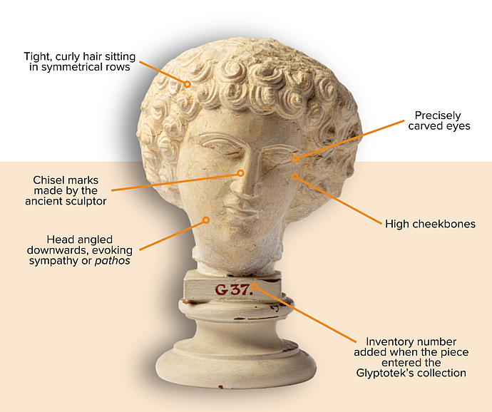 This almost life-size limestone head of a boy came to Ny Carlsberg Glyptotek, Copenhagen in the 1880s as part of brewing magnate and art collector Carl Jacobson’s efforts to buy up the largest collection of Palmyrene portraits that survives from the ancient world. The head dates to 230 C.E.