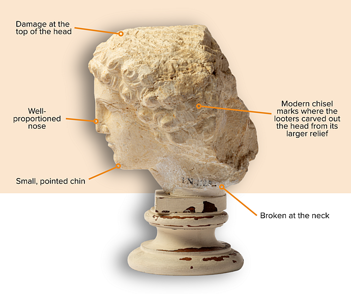 Today, we know that this is entirely wrong. The head is made out of the local limestone sourced right outside of Palmyra.