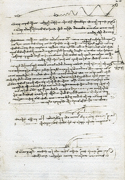 Fig. 11 Leonardo da Vinci, diagram of the law of rebound, ca. 1492. Paris, MS. A, fol. 24r., whole page