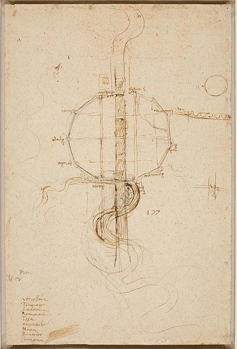 Fig. 2: Leonardo da Vinci, plan for straightening the Arno, ca. 1515. Windsor, Royal Library, 12681.