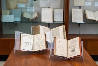 Upon receiving the book, Marcia Tucker, HS-SS Librarian, recalls, “It struck me that there was a set of books in the rare book room that might pair well with Bjork’s volume.” The Institute’s rare book room is home to around 3,000 titles. At the core of the collection are a number of first editions of significant works on the history of science, presented to IAS by Trustee and Trustee Emeritus Lessing J. Rosenwald (1940–79), but it has since expanded to cover diverse subject areas, including the Spinoza Research Collection and other titles in early modern history.