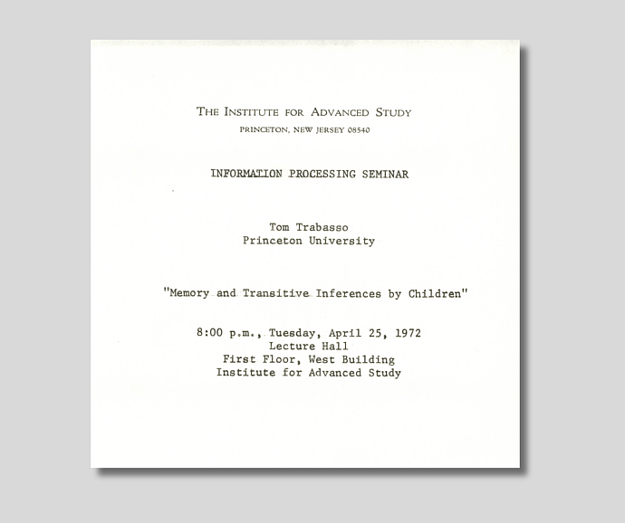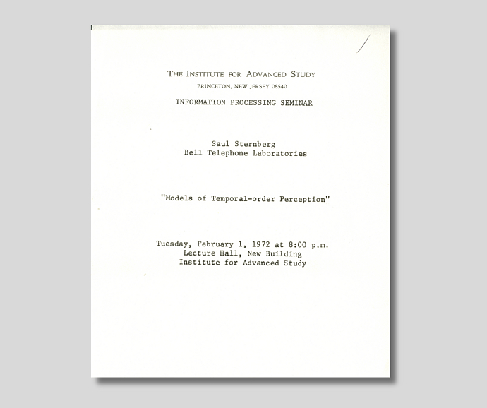 The 1970–71 and 1971–72 academic years saw the peak of the Institute’s involvement in the cognitive revolution. Kaysen first hosted a conference in the fall of 1970, which aimed “to collect views from various eminences as to what the school might do.” Participants included several cognitive scientists, with Luce and Miller foremost among them.9 From 1970–72, Luce organized regular seminars on topics in cognitive science, inviting participants from Bell Telephone Laboratories, the Educational Testing Service, Princeton University, Rutgers University, and the University of Pennsylvania. These seminars offered occasions for cognitive scientists to gather and collaborate.10