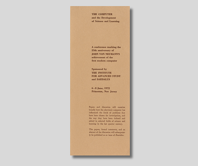 In June of 1972, the Institute hosted yet another important conference. It commemorated the 25th anniversary of the first modern computer, developed by John von Neumann. The speakers at the conference came from diverse areas of study, including pure and applied mathematics, logic and the foundation of mathematics, physics and astrophysics, applied physical sciences, economics, historical social sciences, biological sciences, and what was termed “language, learning, and models of the mind.” In this final area of study, George Miller was the invited speaker.