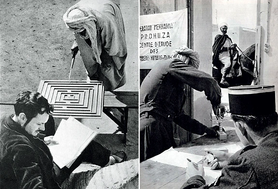 An example of the importance of taking into account the recursive relations between social science and its context is suggested by the work of French psychologists from the Centre d’Etudes et d’Informations des problèmes humains dans les zones arides, who carried out psychological tests on the Mekhadma tribe in colonial Algeria during the 1950s. The photo on the left reveals that the testing was carried out under the aegis of the colonial military and the surveillance of the Caïd, the semi-autonomous headman on horseback. Other colonial-era researchers had more autonomy from colonial officials and indigenous actors.21
