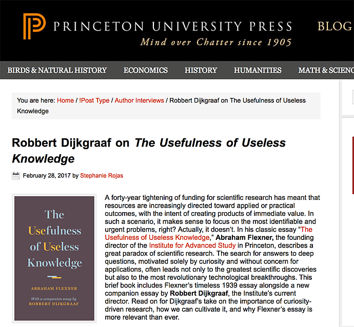 In an interview with Princeton University Press's Stephanie Rojas, Robbert Dijkgraaf speaks of the importance of curiosity-driven research, how we can cultivate it, and why Flexner’s essay is more relevant than ever. Read more on the blog.