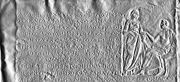 Some brief notes on the metadata accompanying the entries will be useful. Subjects ranging from the general (“Decree”) to the specific (“Decree, Citizenship”) are included for each inscription, and a short description of the contents of the inscription is given in cases where any specifics can be gleaned. Users can browse or search by these subjects. Entries also include a general date (where known), giving the century or centuries in which the inscription is thought to have been produced. The format for this date is the century in Roman numerals, followed by an “a” for dates BCE and a “p” for dates CE; e.g., IVa would refer to the 4th century BCE, while IIIp would refer to the 3rd century CE. If a more specific date is known or has been theorized for the inscription, this specific date is also included in the form given in IG II(2). The location and language(s) of the inscription are also given, as are links to the Packard Humanities Institute's Searchable Greek Inscriptions tool, which includes a published text of the inscription, and to Attic Inscriptions Online which includes an English translation and some notes (but does not exist for all, or even most, inscriptions).