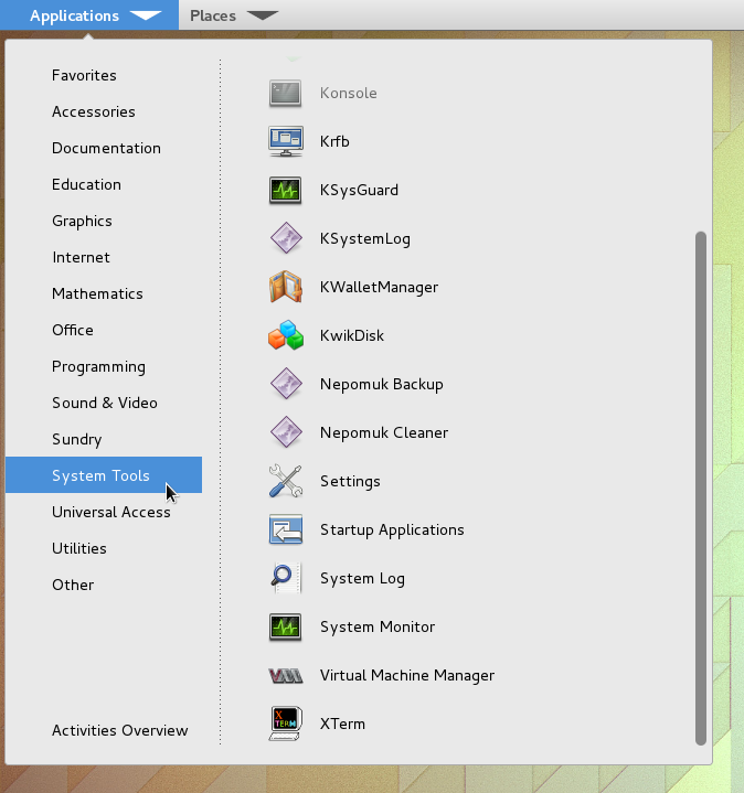- First thing you'll want to do is click on Applications on the top left corner and go to System Tools