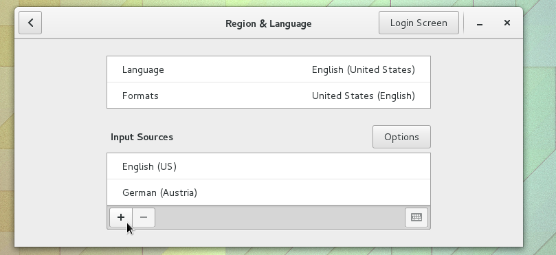 - Under Input Sources, click on the + sign