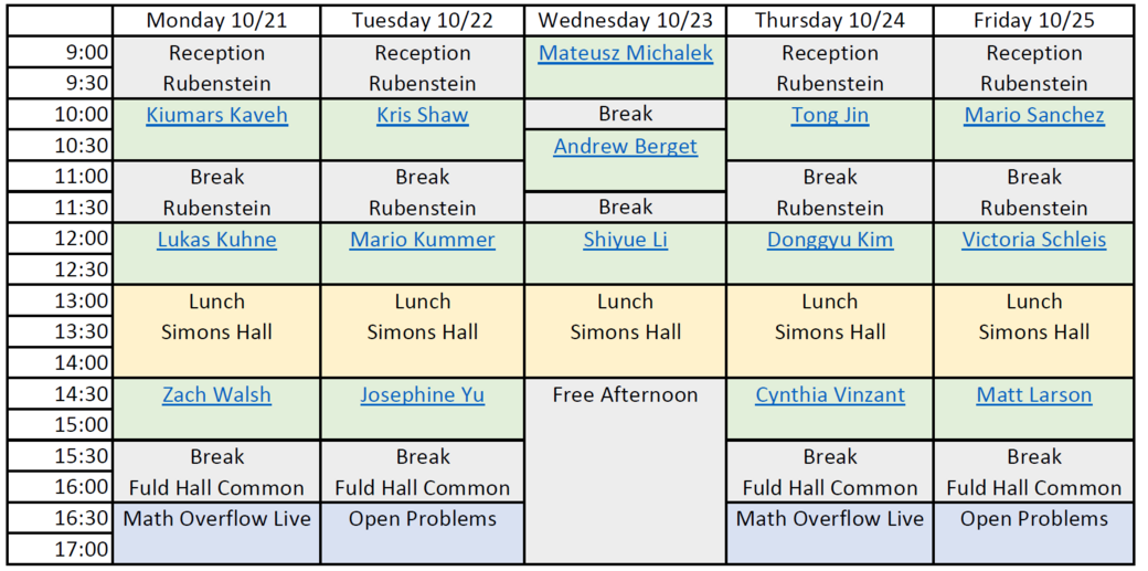 Organizers: Matt Baker, Chris Eur, June Huh, Oliver Lorscheid, and Felipe Rincon