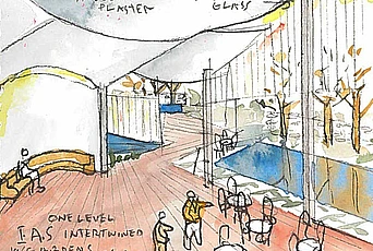 The Commons is conceived as a welcoming and flexible environment for interaction among the permanent Faculty and visiting scholars, and will greatly enhance the Institute’s role as a convener of academic thought and activities across the sciences, humanities, and social sciences. The building will be located to the east of Fuld Hall to provide convenient access for resident scholars and short-term visitors, and will feature a conference space, meeting rooms, and a lounge with a cafe. The Commons will also house office space and will be a venue for displaying images and materials that illustrate the Institute’s remarkable history, its extraordinary significance and influence throughout the world, and its exceptional scholarly community through exhibits, images, and archival materials.