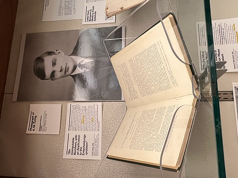 The displays move on to show how IAS scholars from all Schools began to engage thoughtfully with computing technology. One example is a profile of research by Patrick Geary, Professor Emeritus in the School of Historical Studies, on the subject of paleogenetics. It also delves into the interdisciplinarity of research into cybernetics, a field with which scholars working at the Institute were closely engaged.
