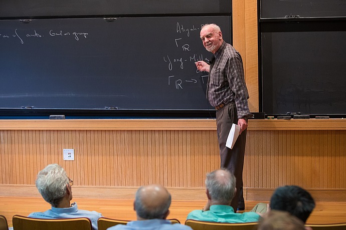 Robert Langlands speaks at the Beyond Endoscopy conference at IAS in 2016.