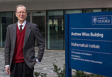 Andrew Wiles outside the Institute of Mathematics at Oxford University, named in his honor.