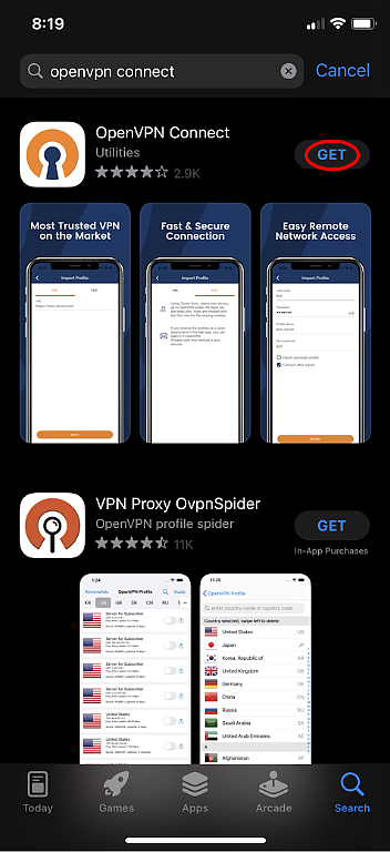 - Click on the OpenVPN Profile bar to connect to the VPN