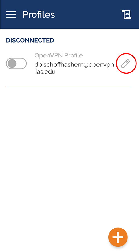 5. You will then be returned to the main screen of the OpenVPN app, listing your new profile. Click the profile, enter your password, and select the "OK" button.
