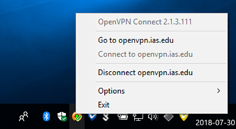 For remote access to internal services hosted at the Institute for Advanced Study (IAS), we utilize the OpenVPN software. This software allows authenticated users to create an encrypted tunnel or Virtual Private Network (VPN) between their remote device and our campus. This has a dual purpose of protecting your traffic from malicious networks and gaining you secure access to campus resources. This access includes services like home directories, the Princeton University Library Gateway (PULIBGW), and more.