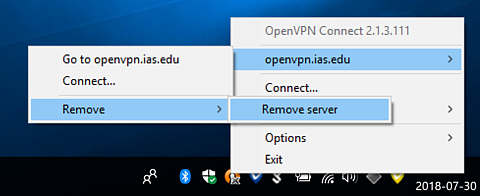 In the Internet settings, under VPN Connections click on openvpn.ias.edu. It will ask you for your user credentials.