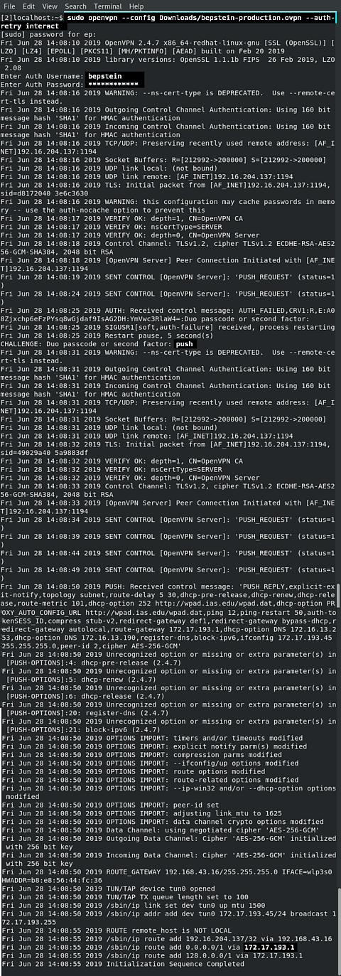 sudo openvpn --config Downloads/client.ovpn --auth-retry interact