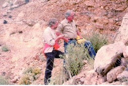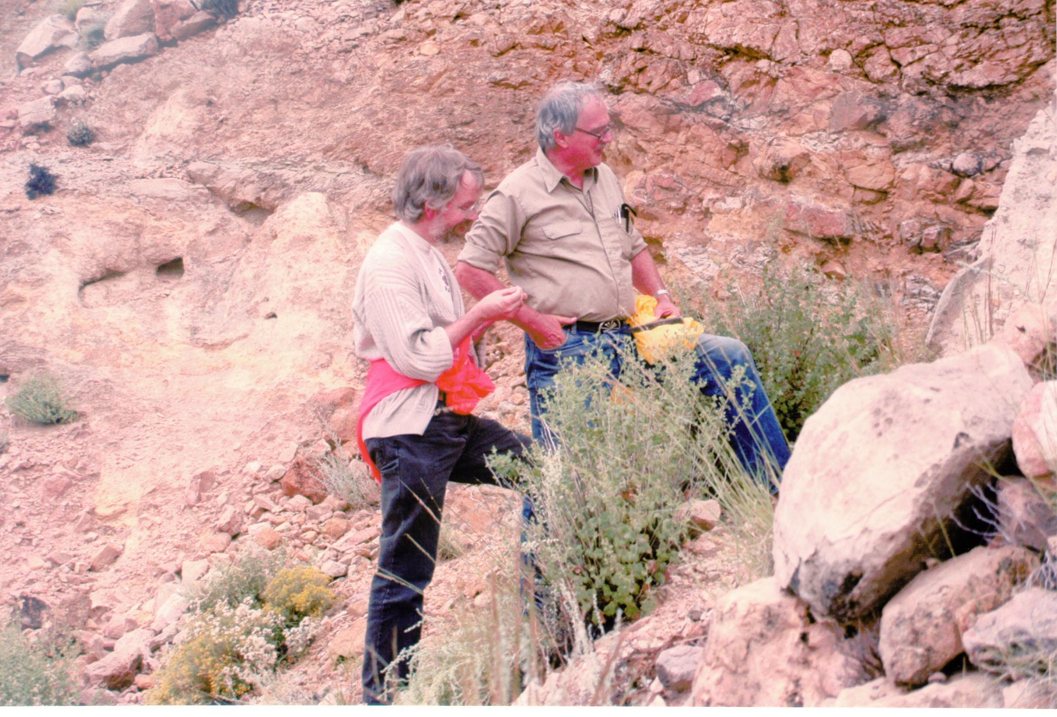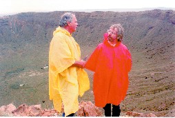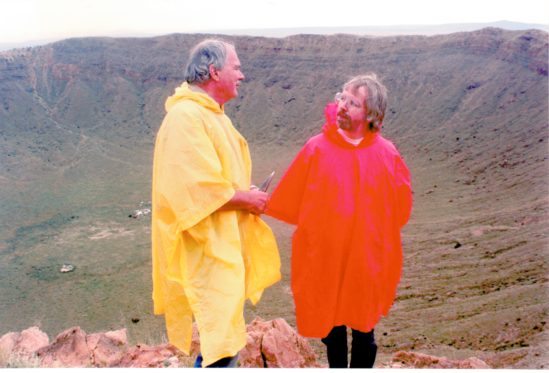 Remarkably, a variant on our scenario B.2.c.i was discovered in real time only three years after we published this paper. For this scenario we had written: ``if tidal breakup of a comet occurs during close passage by the Earth, cometary debris on closely related orbits will spread out into a stream of fragments.'' Replacing the Earth by Jupiter, this is exactly what happened with the comet Shoemaker-Levy when it fragmented during a close passage with Jupiter, leading to spectacular multiple impacts. This was one of the highlights of Gene Shoemaker's career. It was wonderful having him first as co-author on our paper, and then to see a comet bearing the name of him and his wife following one of our impact scenarios. Below are a few photographs of Gene teaching me the geology of the meteor crater in Arizona, in 1992.