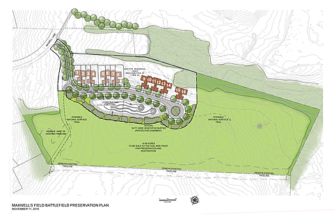 To make this acquisition possible, the original footprint of the Institute’s faculty housing project will be reduced by replacing seven single family home lots with eight additional townhouses, for a total of 16, all located east of Gödel Lane on Maxwell’s Field. The new plan also avoids any development within the Princeton Battlefield National Historic Landmark boundary, designated by the U.S. Department of the Interior in 1961.