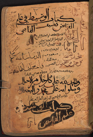 Titlepage of a work about inheritance law by the Yemeni Zaydi judge Shams al-Din Abu l-Hasan Ahmad b. Nasr al-ʿAnsi, entitled Kitab al-Wasit fi ʿilm al-faraʾid. The codex was transcribed in 1461 CE.