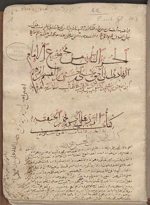 The collection of Codices arabici (Cod.arab. 1–2852) currently encompasses over 3,100 volumes, thus representing the largest collection group among works from the Middle East. Their period of creation reaches from the 9th to the 19th century.
