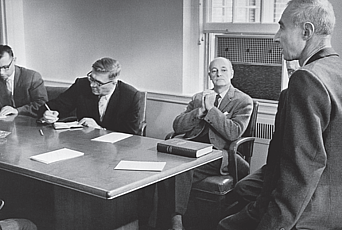George Frost Kennan, an expert on the diplomatic history of Russia, the Soviet Union, and U.S.–Soviet relations, joined the Faculty of the School of Historical Studies in 1956. Kennan is perhaps best known as the author of the “Long Telegram,” dispatched in 1946 to Secretary of State James Byrnes, which proposed a new approach to U.S.-Soviet relations and defined the terms of the Cold War. While the Institute was Professor Kennan’s academic home, he moved between the diplomatic and academic worlds, serving as Ambassador to the Soviet Union in 1952 and to Yugoslavia in 1960–63.